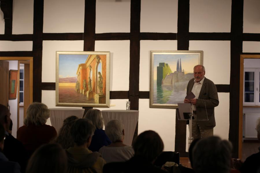 So nimmt er beispielsweise Details alter Architektur und stellt sie malerisch in einen neuen Zusammenhang. Gerd Renshof ist Meister in den Maltechniken aus dem 17. Jahrhundert, und so gelingen ihm intensive Bilder, die realilstisch und detailgetreu gemalt sind - aber sie sind verfremdet und jenseits der Realität. „Magischer Realismus“!