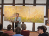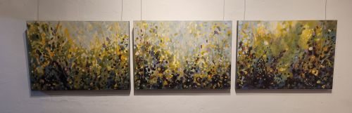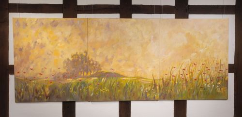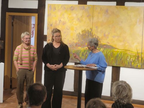 RuthEECordes zeigt Malerei, großformatige Öl- und Acrylbilder, sowie kleinformatige Grafiken, ihre Landschaftsmantras. Karin Otten ist Bildhauerin. Sie gestaltet Skulpturen aus der Verbindung von Holz, Bronze und Keramik