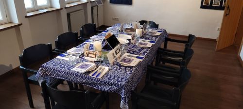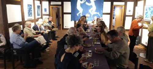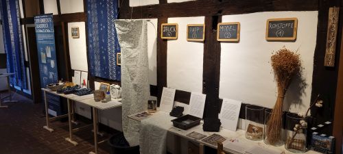 Ergänzend präsentieren Studierende der Uni Osnabrück unter Leitung von Prof.in Dr.in Bärbel Schmidt ihre Recherchen und Gestaltungen zum Blaudruck in Deutschland und Georgien. Ein Semester lang haben sich die Studierenden des Faches Textiles Gestalten intensiv mit dem immateriellen Kulturerbe des Blaudrucks in Deutschland und Georgien beschäftigt. In mehreren Arbeitsgruppen tauchten sie in die Geschichte, Technik und kulturelle Bedeutung dieses traditionellen Handwerks ein. Aus den Projekten ist eine Ausstellung entstanden, die zum Entdecken einlädt – Anfassen ist ausdrücklich erlaubt! Besonders reizvoll ist auch der Raum, in dem das Supra, das traditionelle Festmahl der Georgier, inszeniert ist. Dieses ist nicht ohne das „Blue Table Cloth“ denkbar, eine Tischdecke, die eigens für die Ausstellung von der Staatlichen Kunstakademie Tiflis hergestellt wurde - Kunst und Kultur mit allen Sinnen.
